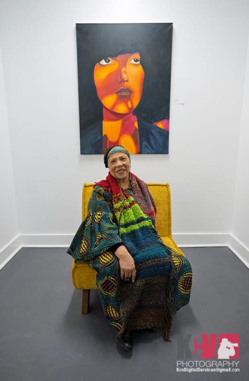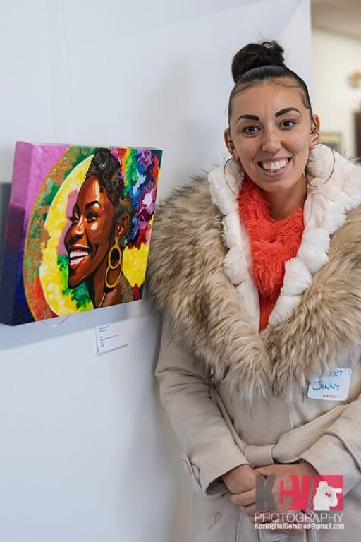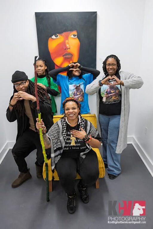 Diane’s work bursts with color, texture, and imagination. Surrounded by family who proudly came out to support her at the opening reception, Mitchell’s presence added a warm, celebratory energy to the gallery. Her creative practice doesn’t fit neatly into one box — she moves fluidly between paintings, collages, and other mixed-media expressions, allowing each piece to take shape in its own way. The result is a body of work that feels playful yet deeply personal, inviting visitors to discover something new with every glance. Throughout the evening, guests gravitated toward her pieces, drawn in by layered surfaces, vibrant palettes, and her very own storytelling that felt both intimate and universal.