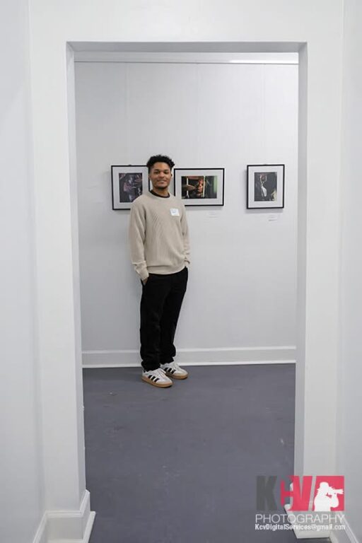 The opening also spotlighted Emmanuel Douge, a photographer making his first formal exhibition debut. Douge’s work in Shades of Black presents a series of portraits and realism scenes that highlight artistic reality. His imagery captures light and shadow with a monochromatic intimacy that invites viewers to reflect on everyday life through a fresh lens. Douge’s transition into the gallery world marks an exciting moment for Frederick’s artistic ecosystem and him, as he tells the world a story through photography.