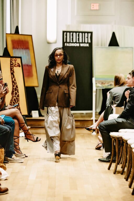 The runway itself told a powerful story — one rooted entirely in Frederick. Every brand featured hailed from the local community, offering a range of aesthetics from streetwear to refined contemporary looks. Each collection reflected style, identity, and the growing confidence of a city stepping into its creative power. By intentionally spotlighting only Frederick-based designers, the show was a declaration that the city’s fashion scene is not emerging, but already here.